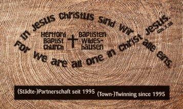 Seit mehr als 20 Jahren gibt es eine Städtepartnerschaft zwischen Wildeshausen und Hertford, einer Kleinstadt im Norden von London. Und genauso lang besteht eine Freundschaft zwischen der "Hertford Baptist Church" und uns als Baptisten in Wildeshausen.Unzählige Male gab es schon gegenseitige Besuche in denen viele sehr wertvolle Kontakte geknüpft und Freundschaften geschlossen werden konnten.Immer wieder konnten Mitglieder beider Gemeinden dabei die Erfahrung machen, dass trotz Sprachbarrieren und verschiedenen Kulturen der gemeinsame Glaube verbindet! Und dank einer Billigfluglinie ist der Weg nicht mehr so weit....